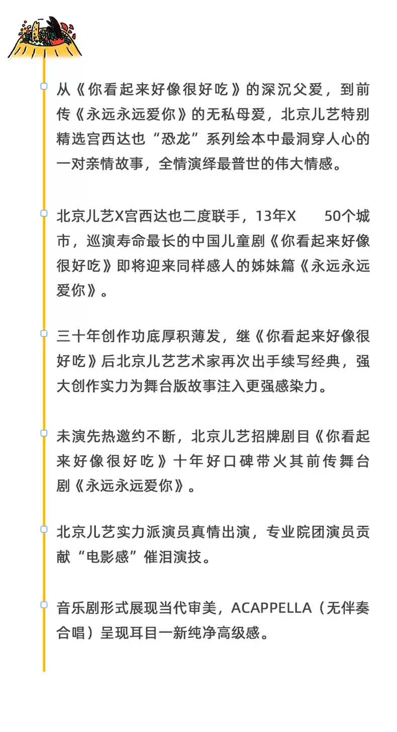 音乐儿童剧《永远永远爱你》作为《你看起来好像很好吃》中霸王龙爸爸故事的前传,《永远永远爱你》讲述了他——也就是童年时期被称为“良太”的霸王龙爸爸,和他的慈母龙妈妈之间的一段甜蜜又心酸的往事。